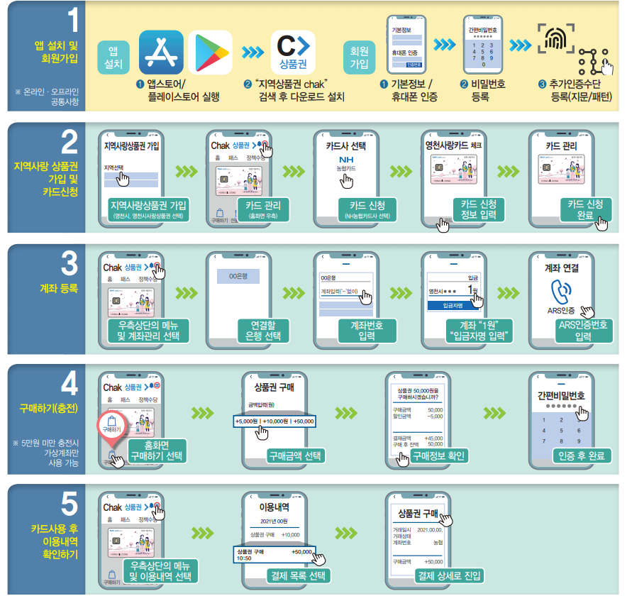 한국조폐공사 앱 (지역상품권 chak) 어플을 다운 받으셔서 아래 사진을 참고하시면서 신청하시면 됩니다.