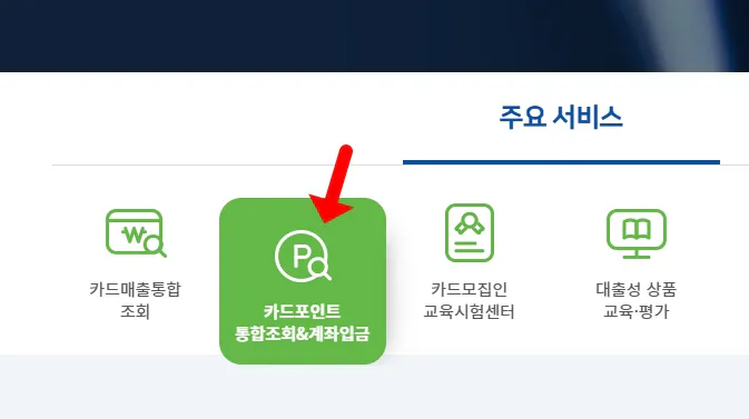 들어가신다음, 카드 포인트 통합조회 & 계좌입금 버튼을 눌러주세요.