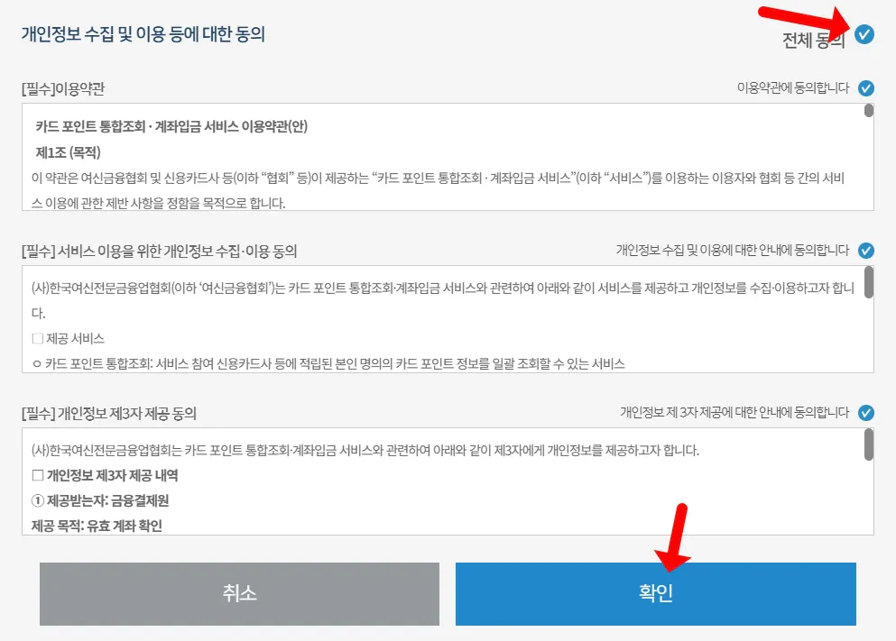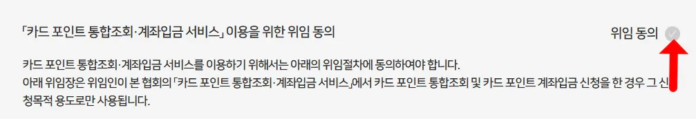4. 카드 포인트는 카드사에서 내 정보를 조회하기 때문에 개인정보 제공 동의가 필수예요.