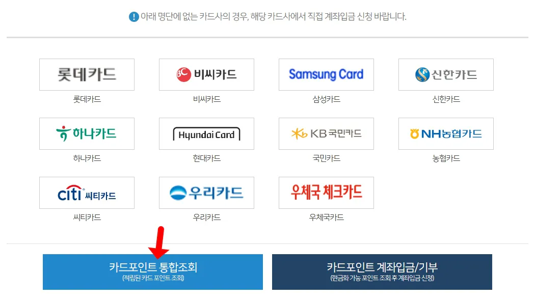 하단에 카드포인트 통합조회 버튼을 눌러주세요.